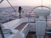 Φτάνουμε στο άνω Κουφονήσι και δένουμε στην αποβάθρα του λιμανιού. Με τη συζήτηση με ντόπιους ψαράδες καταλαβαίνουμε ότι δεν είναι καλά εκεί μια και πιάνει το BlueStar και φέρνει πολύ κύμα. Αποφασίζουμε να πιούμε καφέ και να φύγουμε και έτσι γίνεται. Μετά από τον ελληνικό αλλά και τα ρακόμελα που μας κέρασε η γηραιά κυρία στην οποία έκανε πρόταση γάμου ο Άντζελο(!) αναχωρούμε για Σχοινούσα. Η θάλασσα λάδι. Πρόσω φουλ η μηχανή και έχει αρχίσει να σουρουπώνει. Ο Μιχάλης, ρομαντικός όπως πάντα αφού κάνει λίγο πλάκα με τον Άγγελο πιάνει το κινητό και κάθεται πλώρα.