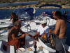 Ο Βαγγέλης βρίσκει και κάτι γνωστούς. Οι υπόλοιποι πάμε για πολεμοφόδια: αγοράζουμε λαχανικά και ρακόμελο (που μας σύστησε ο έτερος Βαγγέλης και αποδείχτηκε εξαιρετικό) και επιστρέφουμε στα σκάφη: έχουμε να γουλίσουμε τα χταπόδια.