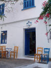 Έχει αρχίσει να σουρουπώνει και το επόμενο φυσικό επακόλουθο είναι ο καφές. Πράγματι πάμε σε ένα όμορφο καφέ μπαρ ως μοναδικοί θαμώνες γνωρίσουμε το Νίκο που είναι ο ιδιοκτήτης.. Μας ετοιμάζει τους Ελληνικούς καφέδες και μετά κάθεται μαζί μας για κουβεντούλα. Είναι και γι αυτόν η τελευταία μέρα της σεζόν και μετά θα φύγει για Κάλυμνο όπου περνά το χειμώνα. Τα έχει με τα κανάλια που τους θυμούνται μόνο αν συμβεί κανένα κακό, μεγαλοποιώντας μάλιστα τα πράγματα (χθες ήταν πρωτοσέλιδο στις ειδήσεις μετά από κάποια Τουρκική πρόκληση – που απ’ ότι μας εξήγησε την ανακάλυψαν οι δημοσιογράφοι). Επίσης τα έχει με τους ντόπιους (25 μένουν το χειμώνα στο νησί!) με τους οποίους όπως μας λέει δεν μπορεί να συνεννοηθεί! Είναι νέος βέβαια και έχει άλλη άποψη για τη ζωή και την ανάπτυξη!