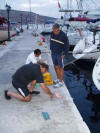 Βρίσκουμε τα σκάφη τα οποία τα καθαρίζουν και τα ετοιμάζουν. Οι άνθρωποι είναι επαγγελματίες...