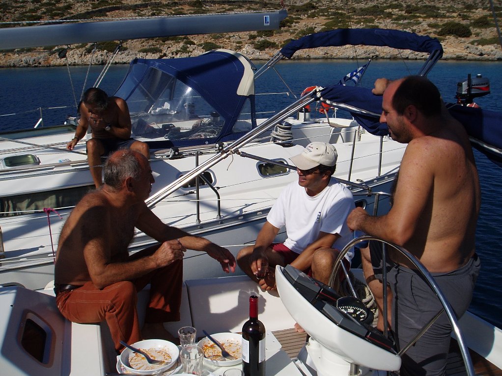 Πλήρωμα: Ο Άντζελο (Άγγελος επί το ελληνικότερο: Ελληνο-Ιταλός φίλος με χρόνια εμπειρίας στα ιστιοπλοϊκά και κυρίως μάγειρας!), ο Μιχάλης (του εμπορικού με μεγάλη εμπειρία στη θάλασσα) και ο υπογράφων (διπλωματούχος του γλυκού νερού).