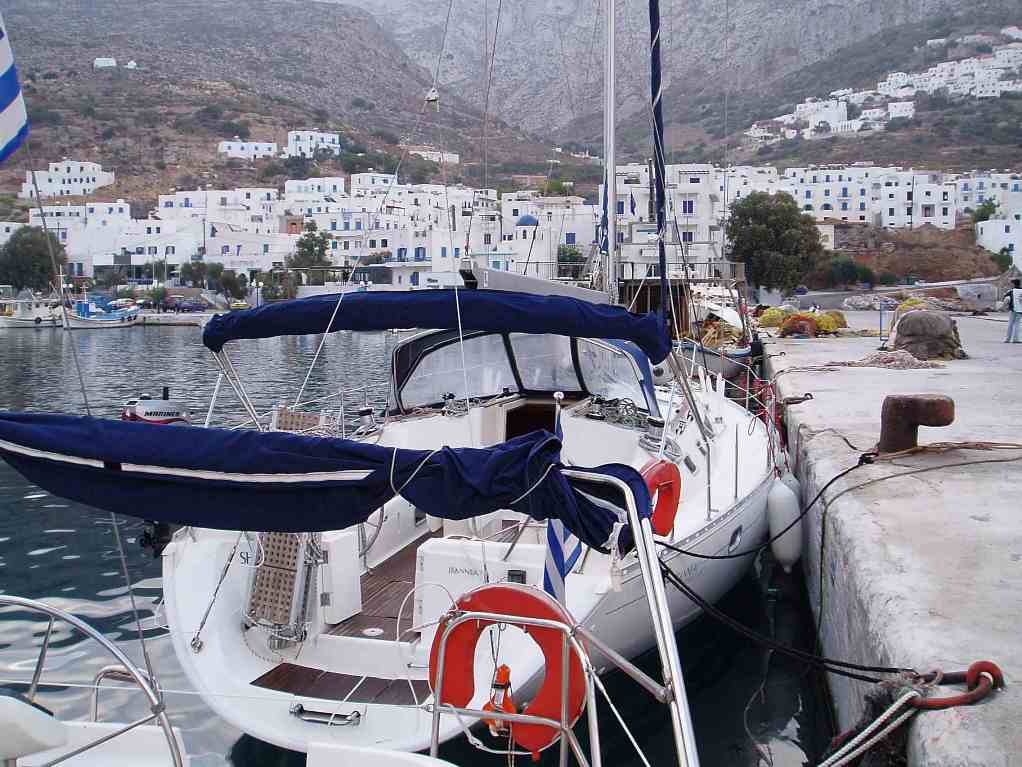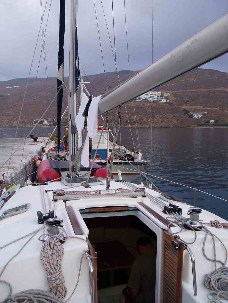 λιμάνι υπάρχουν 5-6 ιστιοπλοϊκά με ξένους τουρίστες. Πρυμνοδετούμε και σε 10
