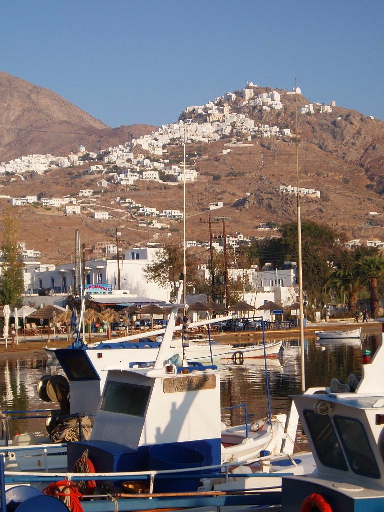 Αφού αποφάγαμε ξεκινάμε για το λιμάνι. Μπαίνουμε μέσα και διαπιστώνουμε ότι υπάρχουν 10-12 σκάφη. Δένουμε μακριά από το μέρος που ξέρουμε πως αράζει το πλοίο της γραμμής και πράγματι κατά τις 18.00 έρχεται το Αγ. Γεώργιος το οποίο ταρακουνάει πολλά από τα ιστιοπλοϊκά. Στις 19.15 έρχεται και το Αδωνις Εξπρές και μετά ησυχάζουμε. Πίνουμε ένα καφεδάκι και πάμε για φαγητό απέναντι. Ψιλοχάλια και μόνο μπριζόλες στο μενού. Είναι φανερό ότι κλείνει τις επόμενες μέρες (μαθαίνουμε ότι θα το κρατήσουν ανοιχτό λόγω καλού καιρού μέχρι τις 2/11 που γιορτάζουν οι Άγιοι Ακίνδυνοι). Το δε γκαρσόνι γλοιώδες. Τα κατάλοιπα της άκρατης τουριστικοποίησης(!). Συνεχίσουμε με ένα ποτό στο όμορφο μπαρ παραδίπλα. Καληνύχτα και γι’ απόψε.
