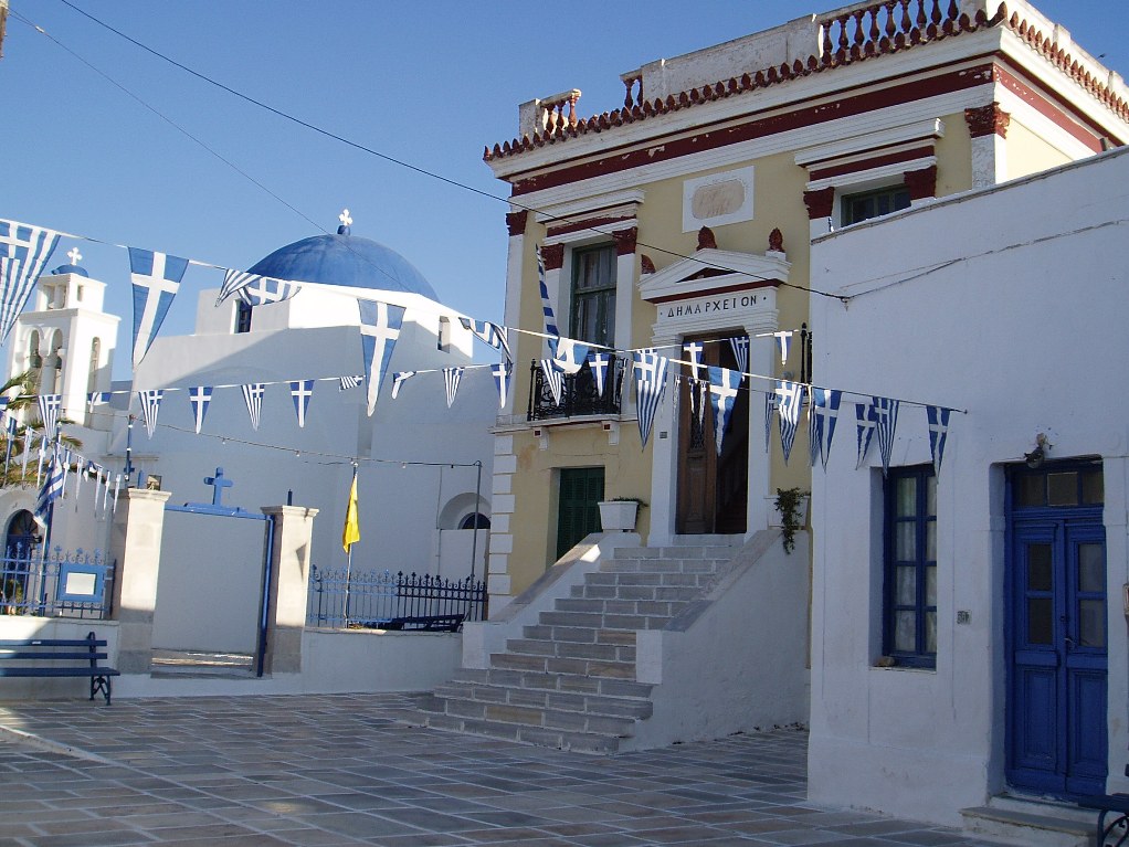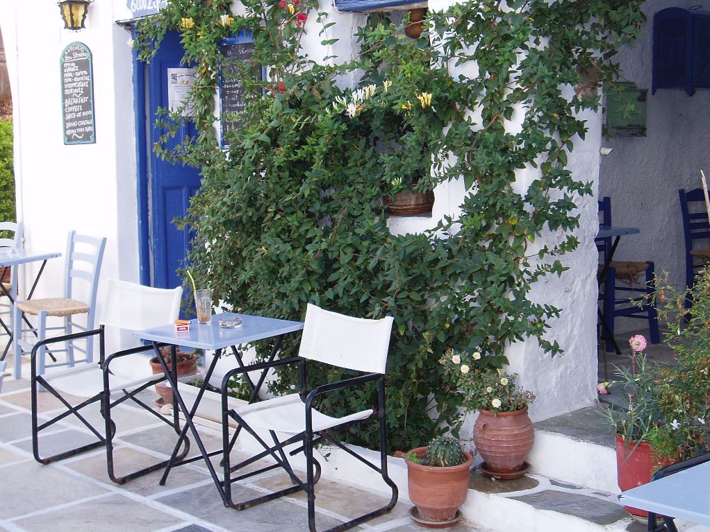 Πρωινό ξύπνημα και καφεδάκι στο καφενείο που μόλις έχει ανοίξει. Συζητάμε για το «έκτρωμα» ξενοδοχείο που επιβάλλεται με το μέγεθος του απέναντι από μας. Όπως μας λένε οι ντόπιοι από το διπλανό τραπέζι, έχει χτιστεί την εποχή της χούντας. Καιρός να γκρεμιστεί! Οι ντόπιοι συζητάνε για τα δρομολόγια που έχουν ελαττωθεί αλλά και για τη καταρρακτώδη βροχή που έπεσε το βράδυ στην Αθήνα! Εμείς μάλλον είμαστε σε άλλο κόσμο.