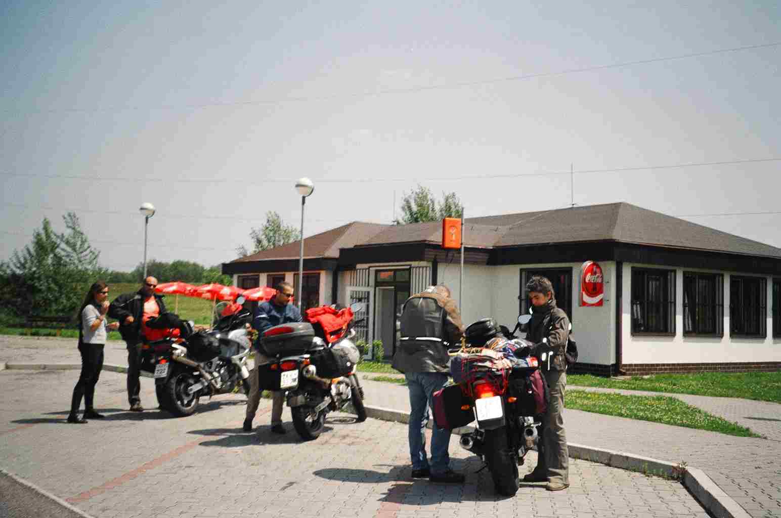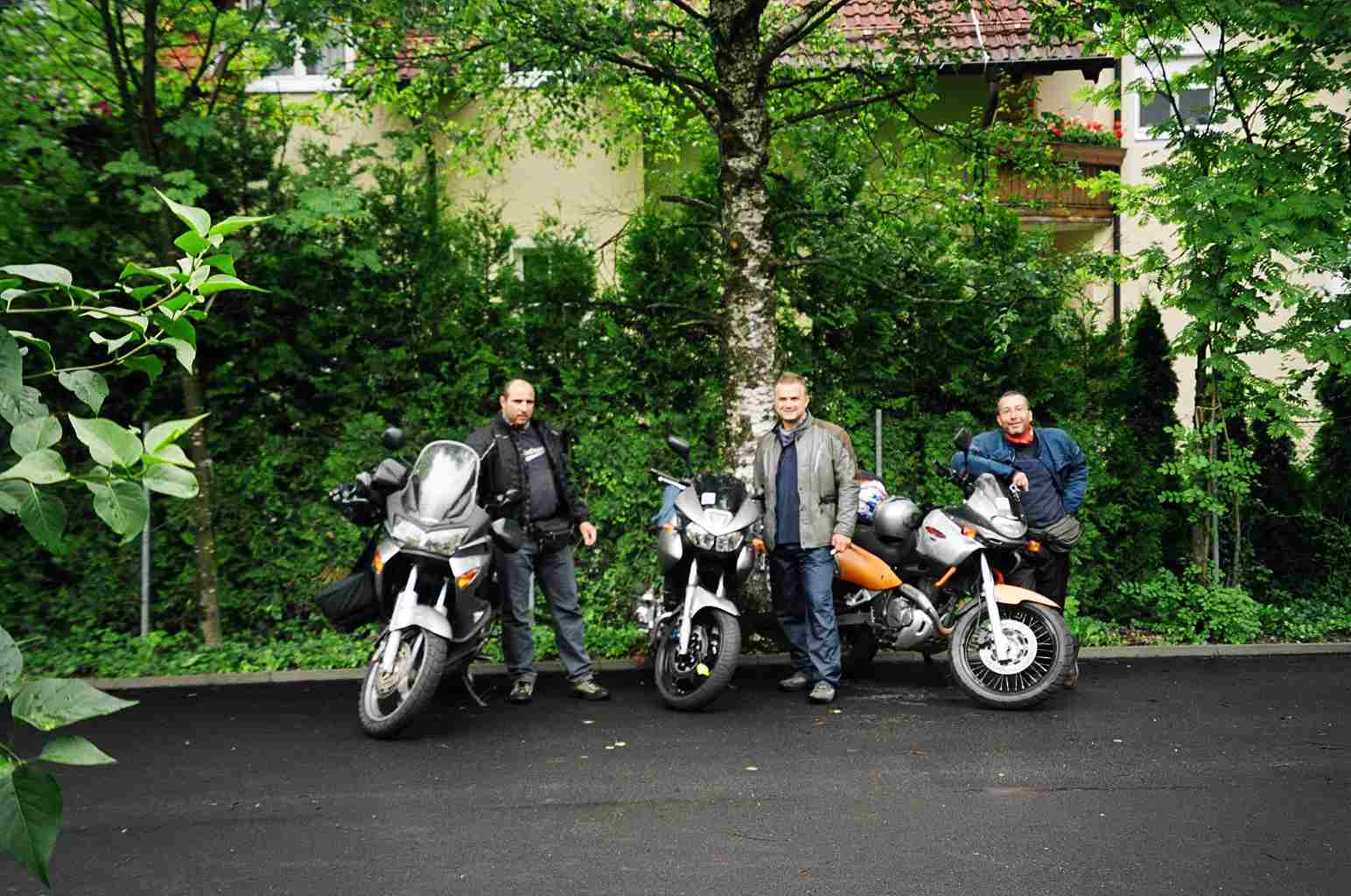 Ξανα-ανεβαίνουμε στις μηχανές, και αφού θαυμάζουμε την σλοβένικη εξοχή (καταπράσινα βουνά, γραφικά χωριά με καμπαναριά, άλογα) και ξεπαραδιαζόμαστε στα απανωτά διόδια (σημειωτέον, ότι το αντίτιμο μηχανής είναι ίσο με του αυτοκινήτου!) μπαίνουμε στα αυστριακά εδάφη! Προμηθευόμαστε το απαραίτητο σήμα κυκλοφορίας για τους αυστριακούς δρόμους και επιτέλους η κυρία στο πωλητήριο μας αναγνωρίζει ως ευρωπαίους πρωταθλητές! Φουσκώνουμε από περηφάνια και κατευθυνόμαστε στο Graz με πονηρό σκοπό στάση για καφέ, αλλά πλησιάζοντας διακρίνουμε απειλητικά μαύρα σύννεφα πάνω από την πόλη. Αποφασίζουμε άμεσα να ξεχάσουμε τον καφέ και να κινηθούμε πάραυτα προς Βιέννη, ώστε να αποφύγουμε το πρώτο ντους. Φυσικά γλιτώνουμε μόνο για λίγο και ... τρώμε την πρώτη βροχή αμέσως μετά, στις Αυστριακές Άλπεις! Καθότι άψογα εξοπλισμένοι (!) φοράμε τα αδιάβροχά μας και με ηθικό ακμαιότατο συνεχίζουμε. Η βροχή δεν κρατά πολύ είναι μόνο για να μας υπενθυμίσει ότι στις Άλπεις βρέχει όλο το χρόνο! Έτσι, λίγο πριν τη Βιέννη κάνουμε στάση, ξεφορτωνόμαστε τα αδιάβροχα, δοκιμάζουμε κάτι Μανιάτικα παξιμάδια που ξέμειναν από το πλοίο, συμφωνούμε για το μέγεθος του χαλαζιού που «έριχνε» (μην καρφωθούμε κιόλας!) και γίνονται οι απαραίτητες τηλεφωνικές κρούσεις στους γνωστούς που έχουμε στη Μπρατισλάβα. Ως αποτέλεσμα, κλείνουμε ραντεβού στην πρώτη γέφυρα της Μπρατισλάβας σε 1 ώρα (;), και πάμε για το τελικό κομμάτι της διαδρομής.