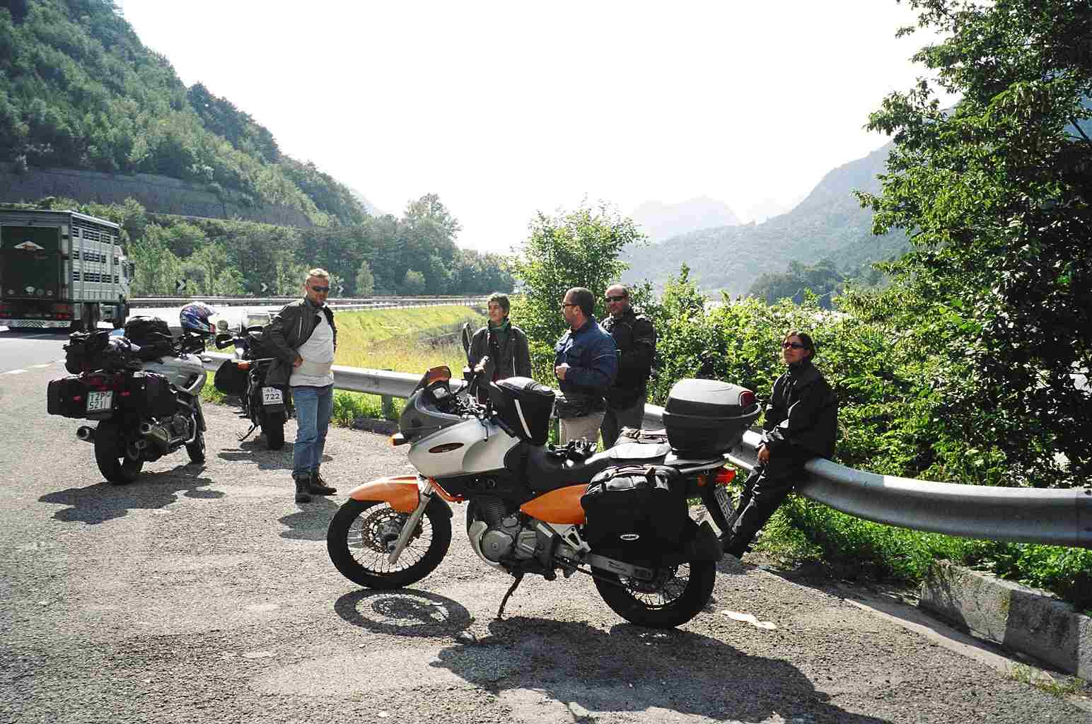 Διασχίζουμε το Salzburg και βγαίνουμε στην autobahn κατευθυνόμενοι προς τις Αυστριακές Άλπεις, με φοβερή μαυρίλα στον ουρανό και κανένα σημάδι ότι θα ανοίξει! Η διαδρομή στα βουνά που ακολουθεί είναι μάλλον μια από τις πιο δυνατές εμπειρίες του ταξιδιού! Κρύο, βροχή, ομίχλη και μαυρίλα, κι εμείς να μπαινοβγαίνουμε στα ατελείωτα τούνελ (μήκους μέχρι 17 χλμ, κλειστοφοβική κατάσταση, όμως τουλάχιστον εκεί μέσα έκανε λίγο ζέστη!). Το αλπικό τοπίο πολύ ωραίο, δάση, υψίπεδα και εναλλαγή τοπίου, αλλά δεν είναι κατάλληλες οι συνθήκες για να κάτσουμε να χαζέψουμε! Πλησιάζοντας στα σύνορα με την Ιταλία, έχουμε πλήρη ανατροπή στα καιρικά δεδομένα: ο καιρός καλυτερεύει ραγδαία! Αρχίζουμε και ξεφορτωνόμαστε αδιάβροχα, πουλόβερ, επενδύσεις και λιαζόμαστε στην πρώτη μας στάση σε ιταλικό έδαφος!