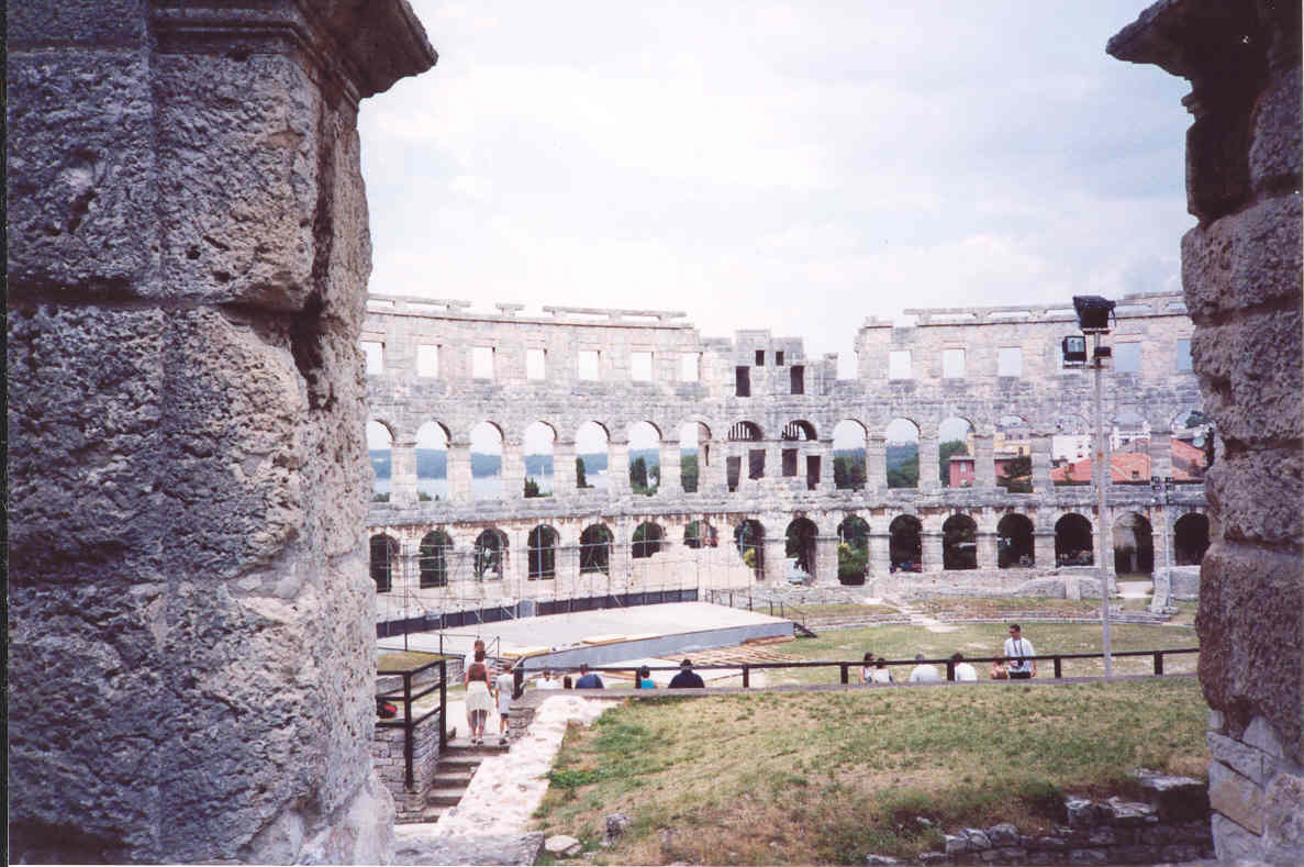 Κροατία Μπαίνοντας στην Κροατία Επιλέγουμε την κεντρική οδική αρτηρία η οποία διασχίζοντας την ενδοχώρα θα μας οδηγήσει στο καταφύγιο και ορμητήριό μας για τις επόμενες ημέρες, την όμορφη πόλη της Πούλα. Η Πούλα βρίσκεται στο νοτιότερο σχεδόν άκρο της Ιστρια. Για να φτάσει κανείς εκεί, πρέπει να διασχίζει 70 περίπου χιλιόμετρα καλού επαρχιακού δρόμου, ο οποίος ελίσσεται μέσα σε καταπράσινα τοπία και γραφικά χωριά. Η προσπάθειά μας να πιούμε καφέ σε ορεινό χωριό της διαδρομής δε στέφεται με επιτυχία, μια και το Ευρώ (παρά τη σιγουριά μας για το αντίθετο) δεν είναι ακόμα αποδεκτό σε αυτά τα μέρη. Αργότερα θα δούμε ότι στις τουριστικές πόλεις ισχύει το αντίθετο. Φτάνοντας στην Πούλα, περνάμε έξω από την πόλη κατευθυνόμενοι ανατολικά προς την περιοχή Βερουντέλα. Στην περιοχή αυτή υπάρχει πληθώρα τουριστικών καταλυμάτων για όλα τα βαλάντια και εκεί έχουμε επιλέξει να καταλύσουμε. Μια γρήγορη έρευνα μας πείθει ότι η διαμονή στα δωμάτια (αντί για ξενοδοχείο) είναι όχι μόνο πιο οικονομική λύση αλλά επιπλέον και ιδιαίτερα ευχάριστη. Ο Μιχάλης βιάζεται να ολοκληρώσουμε τα διαδικαστικά μια και σήμερα είναι ο τελικός του μουντιάλ... Έτσι μετά από λίγο, βρισκόμαστε να παρακολουθούμε τον τελικό (Βραζιλία – Γερμανία) σε τοπική πιτσαρία, τριγυρισμένοι από δεκάδες Γερμανούς, με το Μιχάλη να πανηγυρίζει τα γκολ της Βραζιλίας και τους υπολοίπους να παραδίδουν μαθήματα Ευρωπαϊκής διπλωματίας... Απόγευμα και με δεδομένη την καλοκαιρινή μέρα, δοκιμάζουμε την κοντινή παραλία η οποία μας ευχαριστεί με τα πεντακάθαρα νερά της και το πολύ πράσινο που την περικλείει.