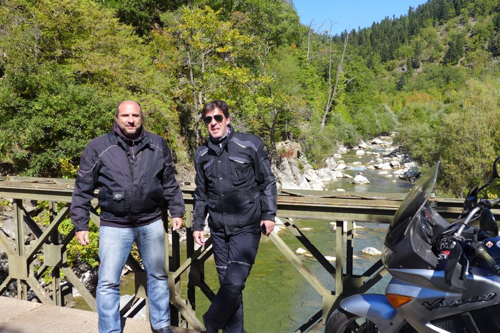 Ξεκινάμε πάλι με βαρύ στομάχι και ελαφριά καρδιά. Ο δρόμος συνεχίζει στριφτερός και πανέμορφος. Όσο πάει και στενεύει. Κάποια ανήλιαγα περάσματα έχουν πολύ υγρασία. Κάποια στιγμή ξαναβγαίνουμε ψηλά και διακρίνουμε πλέον την Εγνατία οδό. Σταματάμε για ξεμούδιασμα. Βγάζουμε φωτογραφίες και νάσου ένας ντόπιος – ο Μιχάλης - με μια γουρούνα. Σταματάει και μας πιάνει την κουβέντα. Είναι από το Μέτσοβο και πάει να πάρει τον πατέρα του που είναι σε ένα κτήμα με καστανιές. Το χειμώνα έχει αρκούδες εδώ. Αλλά και σκίουρους και άλλα ζώα του βουνού. Απέναντι διακρίνεται πράγματι το Μέτσοβο. Καβαλάμε και ξεκινάμε γιατί αρχίζει και βραδιάζει. Μπαίνουμε στο κεφαλοχώρι και σταματάμε στην πλατεία. Βρίσκουμε δωμάτιο στο αρχοντικό Μετσόβου. Μόνον 123 χλμ έχουμε κάνει σήμερα αλλά είμαστε κουρασμένοι. Το βράδυ έρχεται ο Πάνος από Γιάννενα και καθόμαστε γι ακαφέ. Κάνει κρύο έξω – είναι ψηλά εδώ. Μετά καθόμαστε σε μια ταβέρνα (τι άλλο να κάνεις – και ξανατρώμε. Αντε καληνύχτα και για σήμερα.