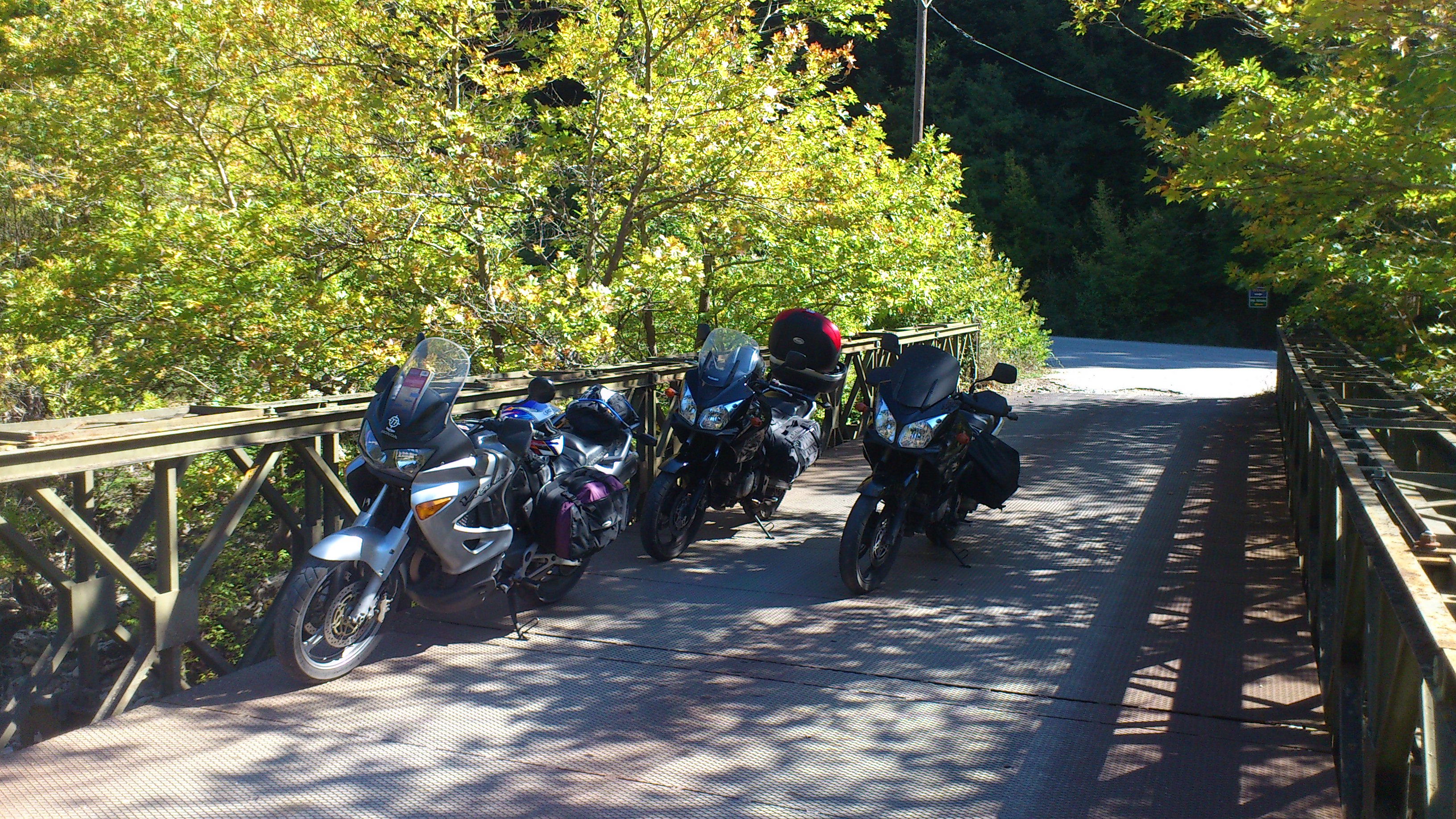 Μετά τις Αφίδνες αρχίζει να ψιχαλίζει… Μασάει η κατσίκα ταραμά; Βάζω τα αδιάβροχα και όλα καλά. Ο δρόμος άδειος. Βάζω βενζίνα (30€ - 255 χλμ.). Καφέ φίλτρου σε Everest 2,70€, θα ξαναπεράσω… Η βροχή συνεχίζει. Εχω ξεσυνηθίσει να οδηγώ στην Εθνική. Είμαι όμως μόνος και μάλλον μ αρέσει! Περνάω τη Λαμία κι ο καιρός αρχίσει και ανοίγει. Μπαίνουμε όμως σε επαρχιακό δρόμο πλέον! Στο Δομοκό κρύο! Σταματάω για φρούτο (μπανάνα) και ξεμούδιασμα. Οσο ανεβαίνω ο καιρός γλυκαίνει! Ευτυχώς γιατί θα ήταν κρίμα να περάσουμε ένα διήμερο με βροχή. Λίγο μετά τα Τρίκαλα στο χωριό Πηγή σταματάω για ξηρούς καρπούς. Επικοινωνώ με τους άλλους αλλά δεν μπορώ να βγάλω άκρη που βρίσκονται… μάλλον δεν ξέρουν κι αυτοί! Το σίγουρο είναι ότι αργούνε και έτσι αποφασίζω να πάω μέχρι τη λίμνη Πλαστήρα. Και η απόφαση αποδεικνύεται σοφή. Η διαδρομή υπέροχη (μέσω Μουζακίου), ο καιρός πανέμορφος, η διάθεση στα ύψη. Φτάνω στη λίμνη και τραβάω μερικές φωτογραφίες. Ελέγχω το χάρτη και τσεκάρω έναν επαρχιακό δρόμο με κατεύθυνση βόρεια – βορειοδυτικά που μπορεί να βγάζει και στο δρόμο απ όπου έρχονται τα παιδιά. Λίγο με αποτρέπει το γεγονός ότι προς τα κει φαίνεται ένας ορεινός όγκος, ο οποίος είναι κατάμαυρος από τα σύννεφα! Αρχίζω να ανεβαίνω φτάνοντας μέχρι Φυλακτή, αλλά κάποια στιγμή καταλαβαίνω ότι είναι πιο εύκολο να πιάσω το λόττο παρά να βρω το σωστό δρόμο μέσα στα πολλά μη σηματοδοτημένα δρομάκια που ξεφυτρώνουν μπροστά μου και επιστρέφω πίσω από τον ίδιο δρόμο. Φτάνω στην πύλη Τρικάλων. Στάση για καφέ στο γεφύρι. Ωραία μέρη. Κακώς δεν έχουμε έρθει πιο πολύ σκέφτομαι και υπόσχομαι άλλη μια φορά να ξανάρθω σύντομα. Οι άλλοι ακόμα δεν έχουν δώσει στοιχεία θέσης και έτσι κάποια στιγμή ξεκινάω προς Ελάτη. Λίγα χιλιόμετρα πριν φτάσω στο χωριό σταματάω σε μια απλωσιά για να θαυμάσω το τοπίο. Εκεί πιάνω συζήτηση και με τον παππού που βόσκει τις γίδες του. Θέμα μας (μετά τα πρώτα τυπικά) τι άλλο; η οικονομική κατάσταση. Άκρη δε βγάζεις. Μου εξηγεί ότι από πάνω μας είναι ο Κόζιακας, ενώ στο βάθος (νότια) είναι τα βουνά των Αγράφων. Όμορφα μέρη σκέφτομαι ξανά! Μετά από λίγο βγάζει λίγη κολοκυθόπιτα και μου προσφέρει. Νάσαι καλά παππού. Μ’ αυτά και μ’ αυτά ο ήλιος πέφτει και πιάνει κρύο, και οι άλλοι ακόμα δεν έχουν φανεί… Εχω αρχίσει και ανησυχώ… Σε λίγο όμως ακούω μηχανές. Βγαίνω λίγο στο δρόμο και ΝΑΙ. Αυτοί είναι: Σταματάνε και πριν ακόμα βγάλουν κράνη έχουν αρχίσει και φωνάζουν. Δεν καταλαβαίνω τίποτα. Κάτι για στροφές πιάνω… Για να μην τα πολυλογούμε, ο δρόμος από Άρτα προς Τρίκαλα ήταν όλο στροφές…. Και κάτι παραπάνω…