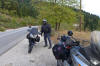 Σάββατο πρωί και ξυπνάω με δυσκολία – το κρασί βλέπετε… Τρώμε πρωινό και συζητάμε για διάφορα. Ετοιμαζόμαστε και κατεβαίνουμε στο υπόγειο γκαράζ για να φορτώσουμε τις μηχανές. Ο Μιχάλης και ο Παναγής βάζουν και βενζίνη στο τοπικό βενζινάδικο – μας εξυπηρετεί μια γιαγιά που μας βγάζει έξω και ένα ακροφύσιο με μετρητή πίεσης για να βάλουμε αέρα… Ο καιρός ήλιος με δόντια.