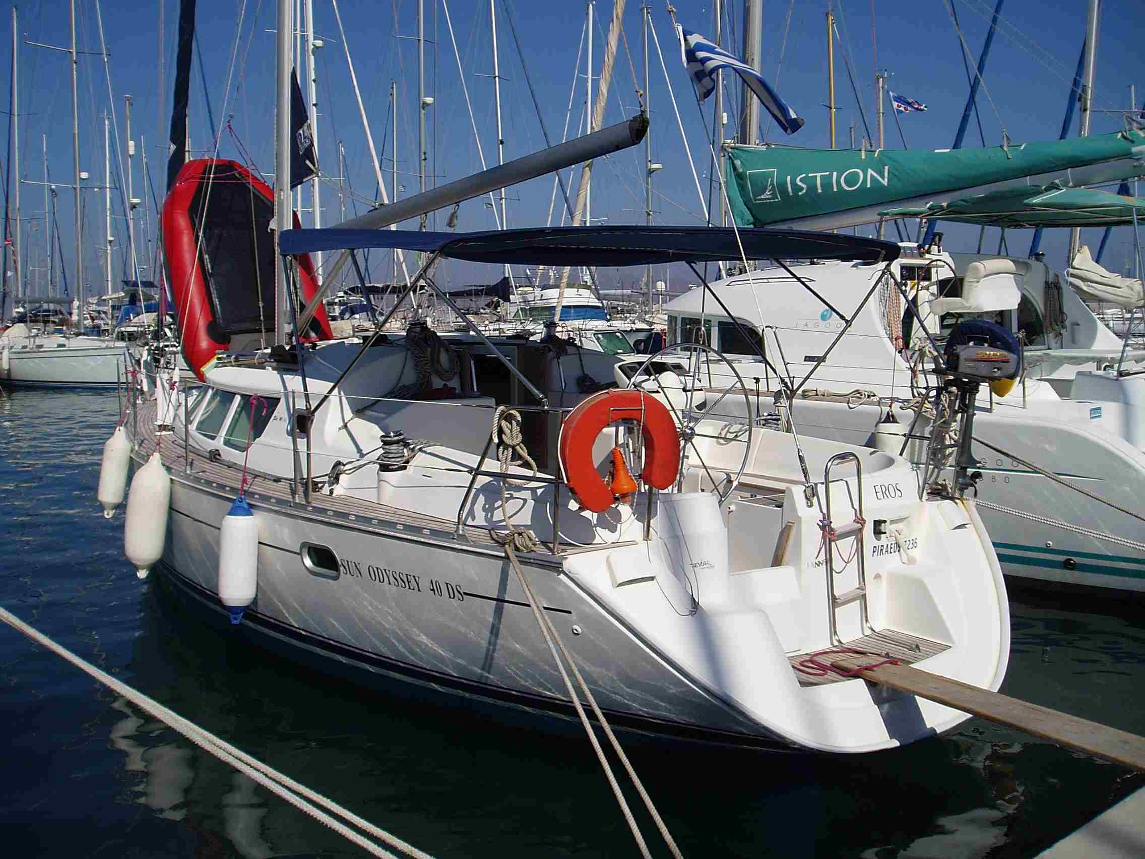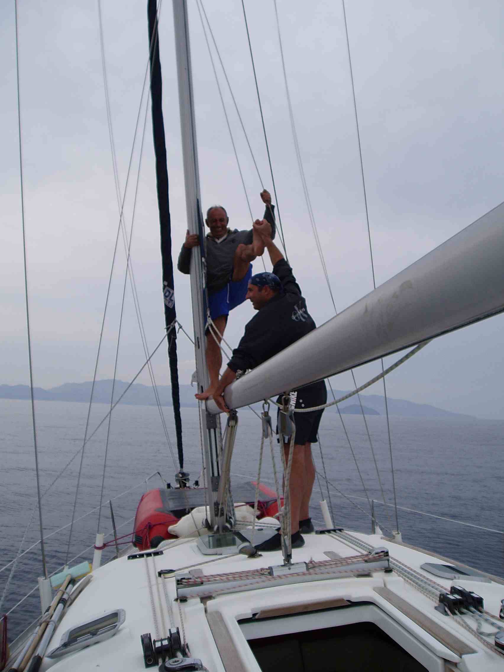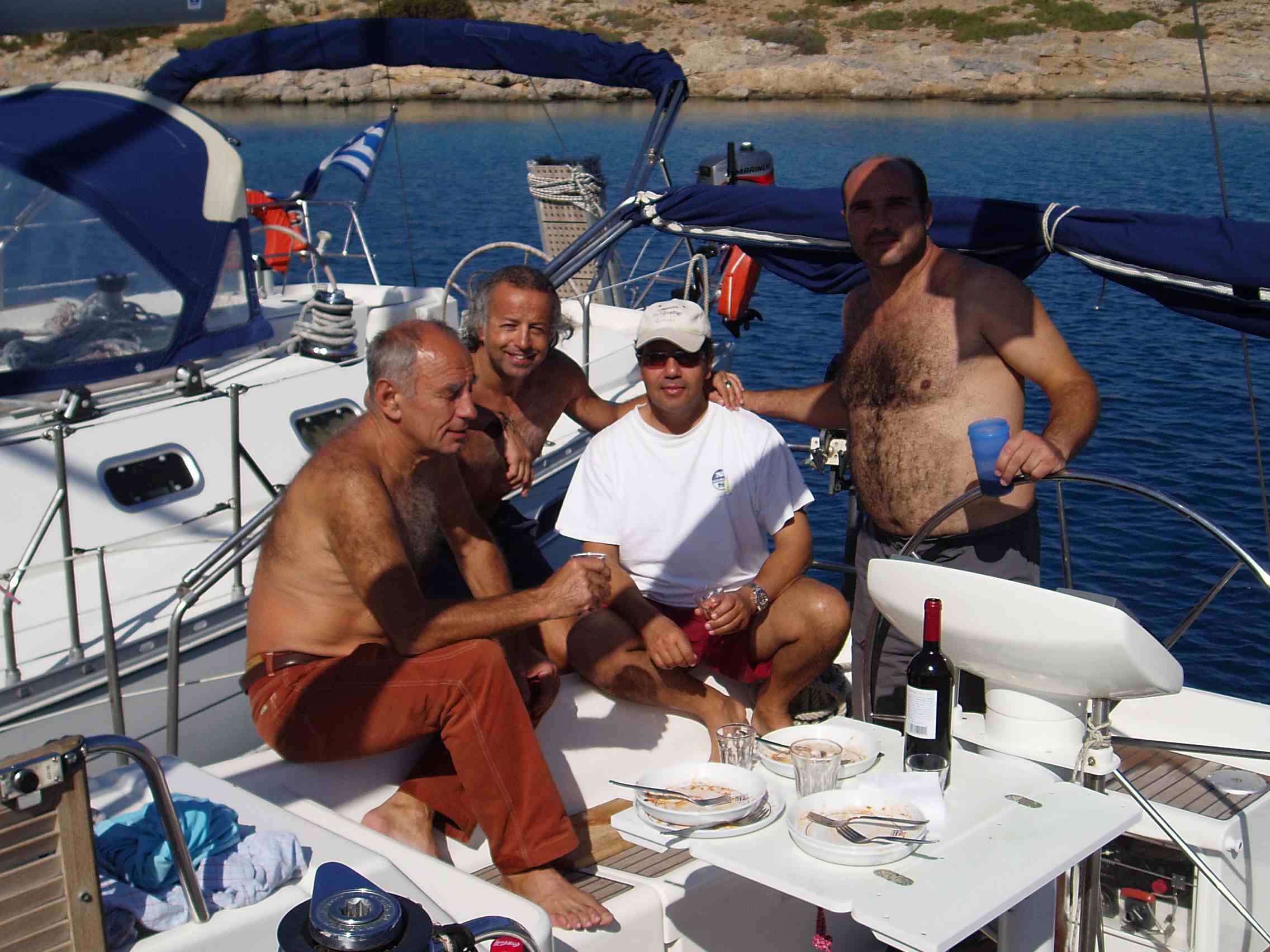 Μετά την προμήθεια των απαραίτητων φαγώσιμων μαζευόμαστε στο σκάφος (Ερως: Sun Odyssey 40’) και ο La Rui ο υπεύθυνος της μαρίνας, μας εξηγεί τα βασικά. Ο Μιχάλης ελέγχει τη μηχανή, ο Άντζελο τα κρεμμύδια του (δείχνει να γνωρίζει κάθε είδους σκάφος...) και εγώ τακτοποιώ τα πράγματα. Το σκάφος έχει τρεις καμπίνες και καταλαμβάνει ο καθένας από μία (με το Μιχάλη να παίρνει την πλωριά και καλύτερη...).
